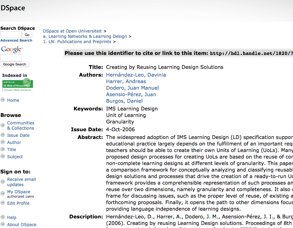 Hernández-Leo, D., Harrer, A., Dodero, J. M., Asensio-Pérez, J., & Burgos, D. (2006). Creating by reusing Learning Design solutions.