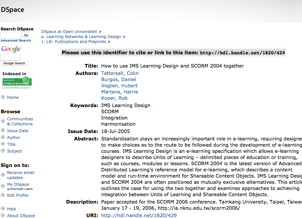 Tattersall, C., Burgos, D., Vogten, H., Martens, H., & Koper, R. (2005). How to use IMS Learning Design and SCORM 2004 together.