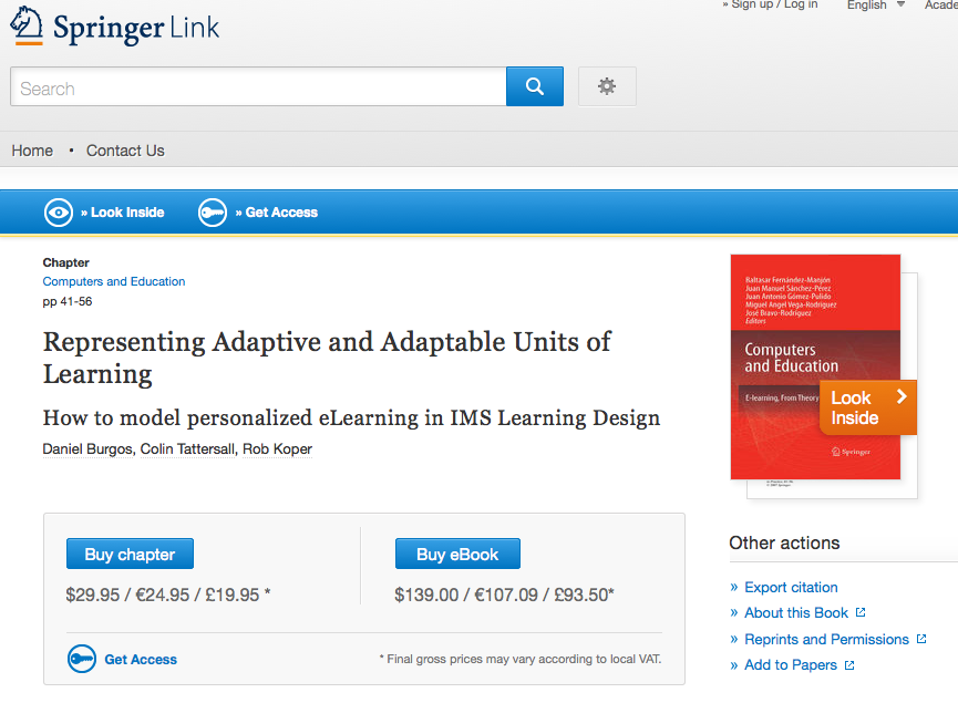 Burgos, D., Tattersall, C., & Koper, R. (2007). Representing Adaptive and Adaptable Units of Learning. Computers and Education, 41-56.