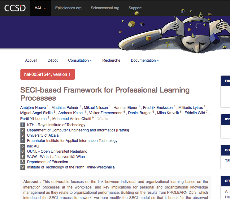 Naeve, A., Palmér, M., Nilsson, M., Ebner, H., Enoksson, F., Lytras, M., … & Chatti, M. A. (2007). SECI-based framework for professional learning processes.
