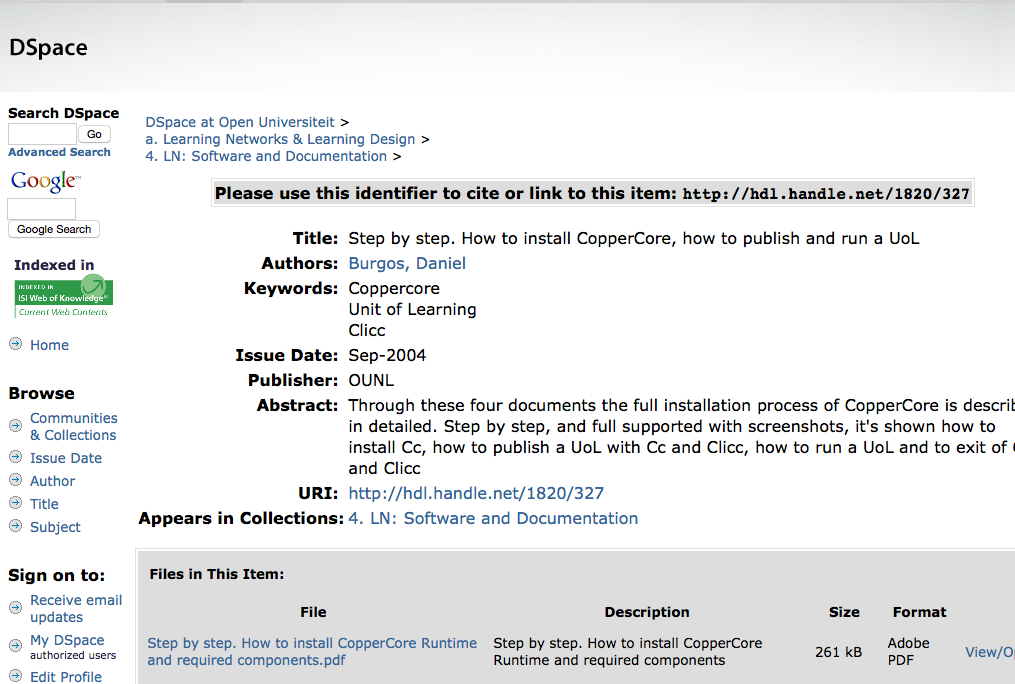 Burgos, D. (2004). Step by step. How to install CopperCore, how to publish and run a UoL.