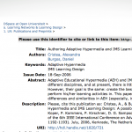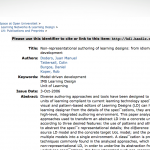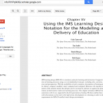 Tattersall, C., Sodhi, T., Burgos, D., & Koper, R. (2007). Using the IMS Learning Design notation for the modelling and delivery of education. Handbook of Visual Languages for Instructional Design: Theories and Practices. Abstract IMS learning design (LMS-LD) is a notation system for learning and interaction. It supports the description of learning process using a […]