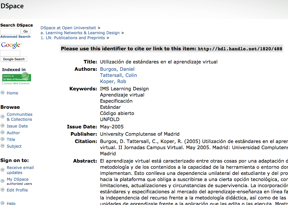 Burgos, D., Tattersall, C., & Koper, R. (2005). Utilización de estándares en el aprendizaje virtual.